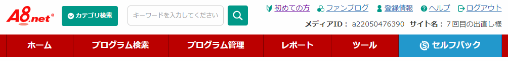 A8のサイトにログインする。右上に「セルフバック」のリンクがあるはず。これを押す