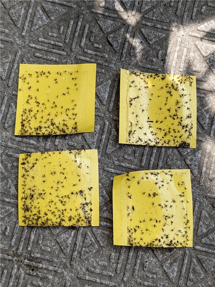 黄色は花の色に似ているので虫が寄ってくるみたいです。(コバエも黄色好きなんですかね?)