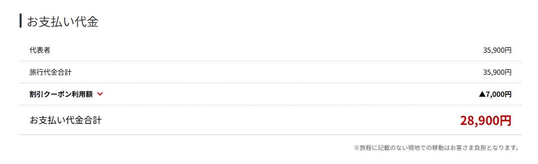 JALパック 飛行機は往復で宿は1泊だけで、クーポン使って 28900円