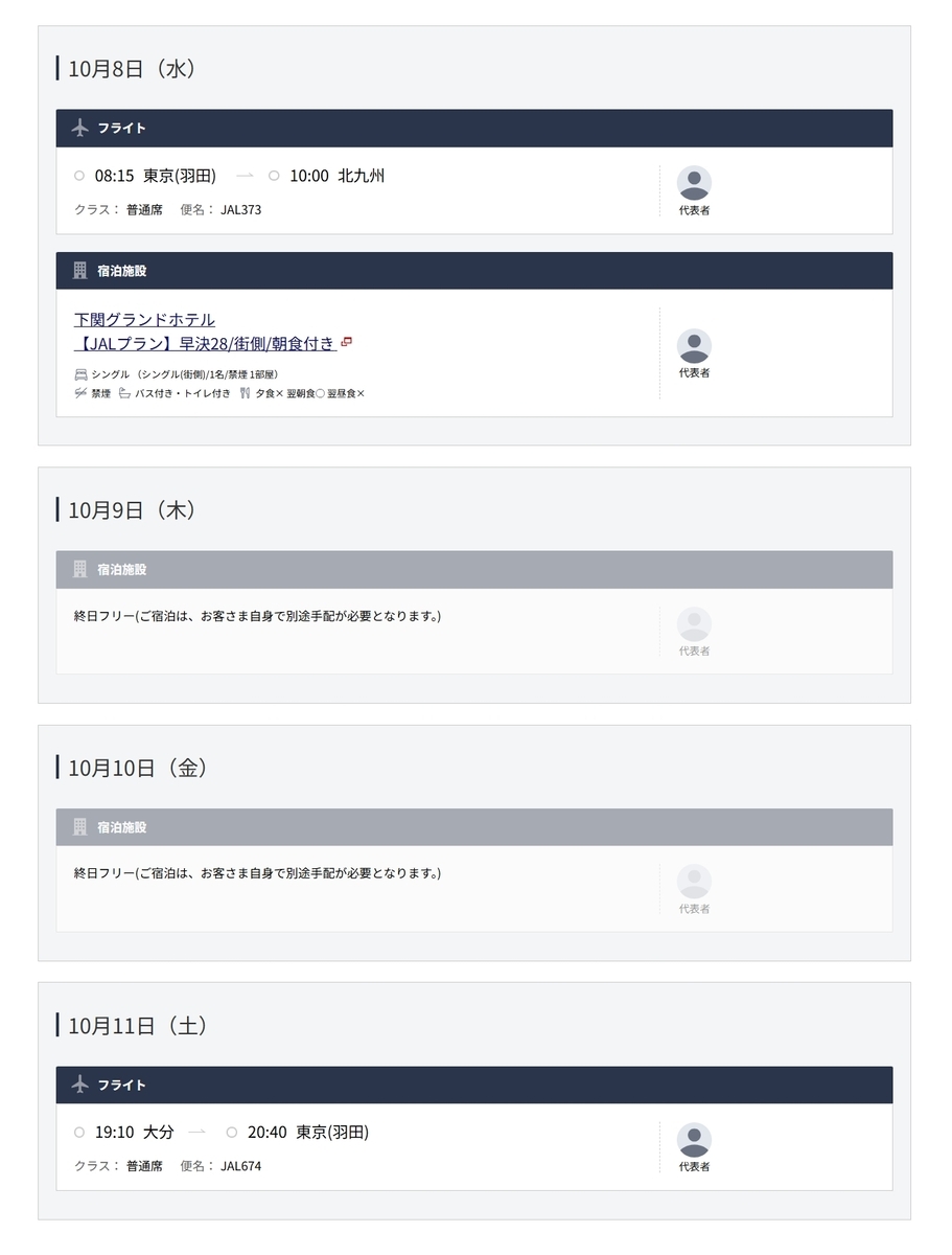 JALパックは飛行機と宿をセットで取るのですが、全ての行程の宿泊先をJALパックでとらないといけないと思っていました。
