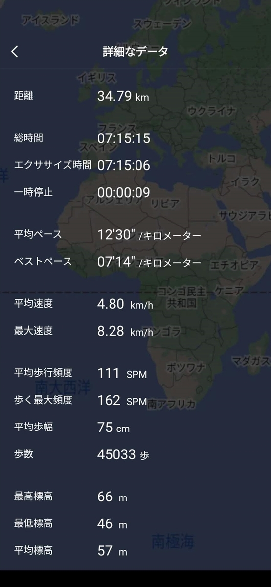 34.79キロメートル 45000歩