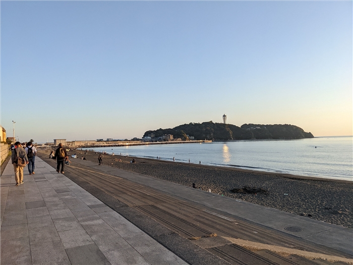 この時点で江の島が遠くに小さく見える。