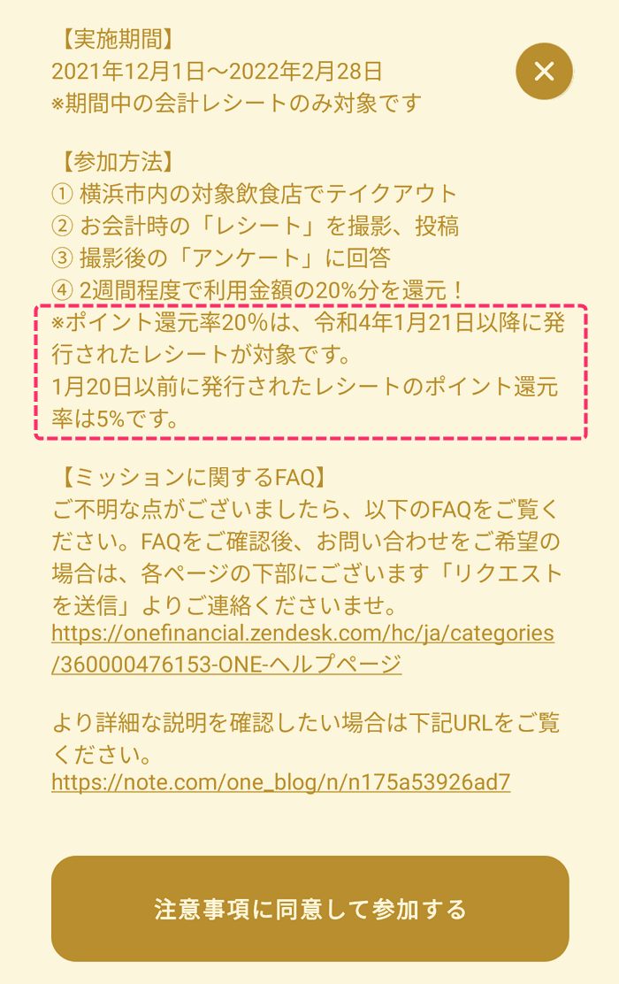 横浜市のレシ活チャレンジは、飲食店をメインとした施策です。飲食に関係ないレシートは20%還元の対象外です。 ONEというアプリの中で、20%還元とは関係ない「普通のレシート買取」のメニューもあるので、そっちに投げ込むのもよいですね。